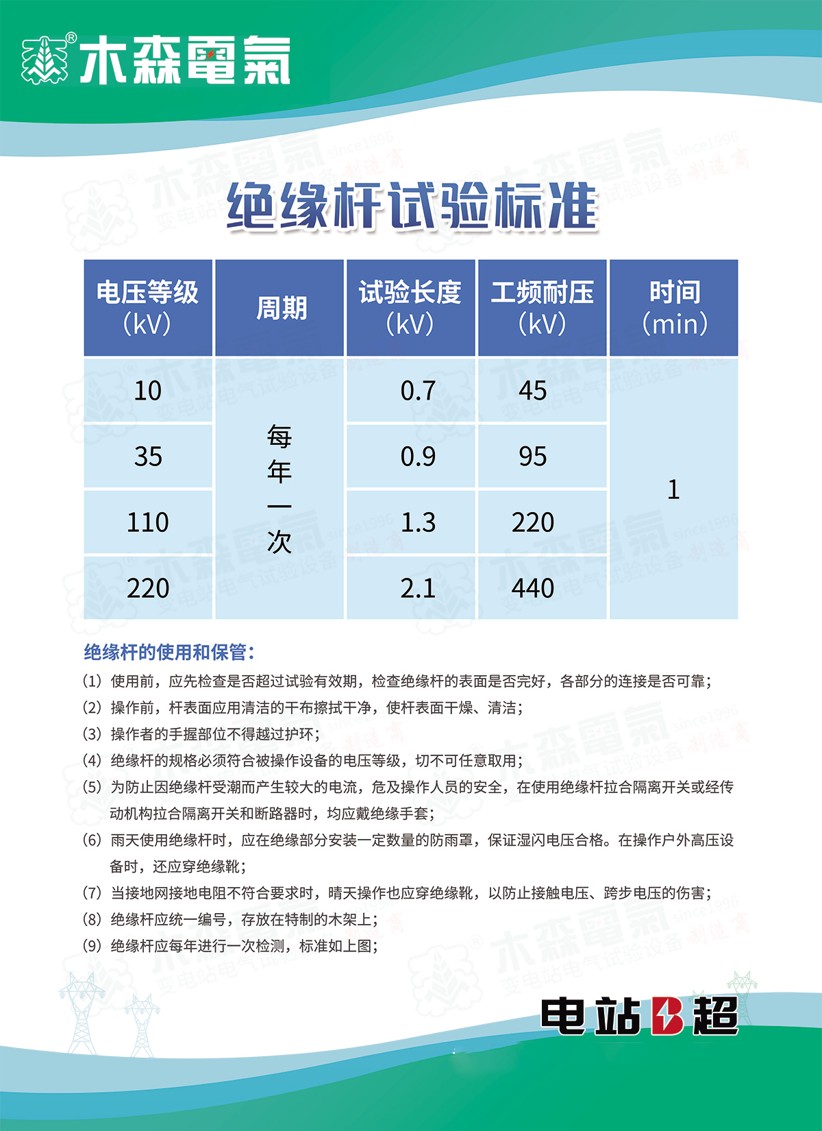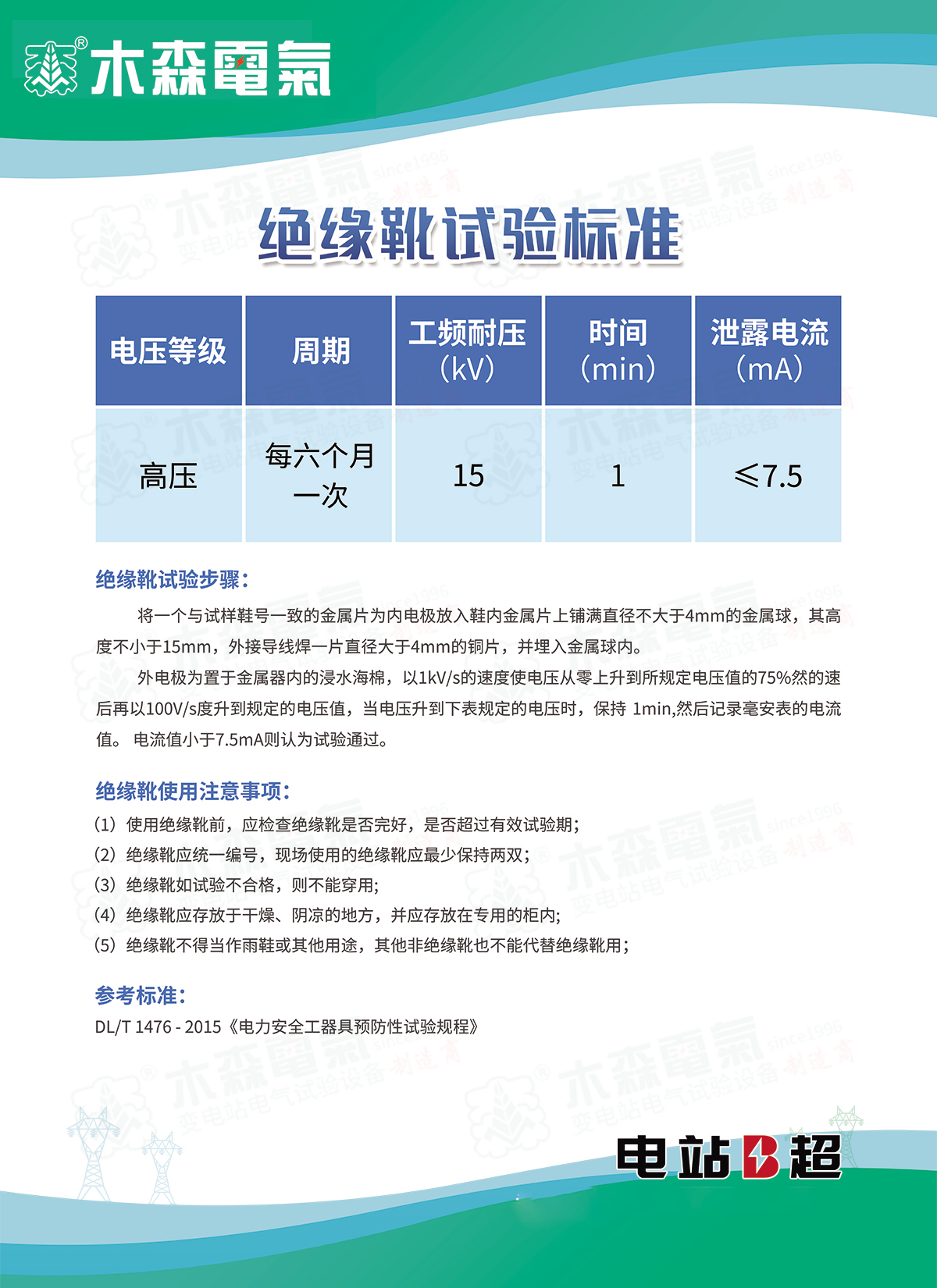 自動脫扣型絕緣靴(手套)耐壓支架是根據(jù)《DLT 976-2017 帶電作業(yè)工具、裝置和設(shè)備預(yù)防性試驗規(guī)程》、《DLT 1476-2015電力安全工器具預(yù)防性試驗規(guī)程》、《GBT 17622-2008帶電作業(yè)用絕緣手套》、《CB21148 2020足部防護 安全鞋》等相關(guān)規(guī)程中關(guān)于工頻耐壓的要求基礎(chǔ)上研發(fā)而成??梢园匆髮^緣鞋、絕緣手套等安全工器具進行智能化絕緣耐壓試驗,絕緣靴及絕緣手套耐試驗周期為半年,試驗過程中不允許擊穿,同時絕緣靴絕緣絕緣手套泄漏電流不大于限定值。產(chǎn)品適用于所有與電力相關(guān)行業(yè)。